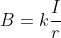 donde B representa el campo magnético, k es una constante, I es la intensidad de la corriente y r el radio de la espira. Si se despeja I de esta fórmula, la expresión resultante es: